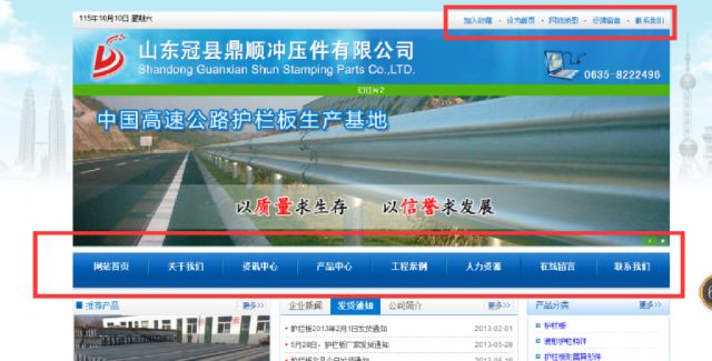其中【加入收藏】、【設為首頁】、【網(wǎng)站地圖】小編倒是點擊沒什么效果,【反饋留言】又與中心導航中的【在線留言】重復,【聯(lián)系我們】也重復,這類型的導航豈不是多此一舉嗎?在來看看中心導航的布局如何,第一位是【網(wǎng)站首頁】,這個沒錯,幾乎所有網(wǎng)站的首頁都布局在第一位,得到的權重較高,再來看看第二個【關于我們】,小編真的無力去吐槽這類的布局,將【關于我們】放在僅次于首頁的位置,分散了過多的權重不說,還提供不了有價值的東西,百度蜘蛛給予的評價分就相對較低,在接著往下看,【資訊中心】和【產(chǎn)品中心】【工程案例】也許對瀏覽用戶有效果,所以在這里不做討論,再來看看【人力資源】【在線留言】【聯(lián)系我們】,這三個導航也并沒有給瀏覽用戶實實在在的價值內(nèi)容,整個網(wǎng)站完全沒有體現(xiàn)一個價格的參考以及廠家的優(yōu)勢,試問,這類的網(wǎng)站靠什么進入百度首頁呢?原因有三:1.其他同行的內(nèi)容比不過這家;2.基礎優(yōu)化工作做的久;3.大量購買單向鏈接走作弊道路。